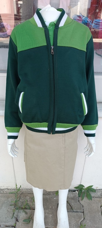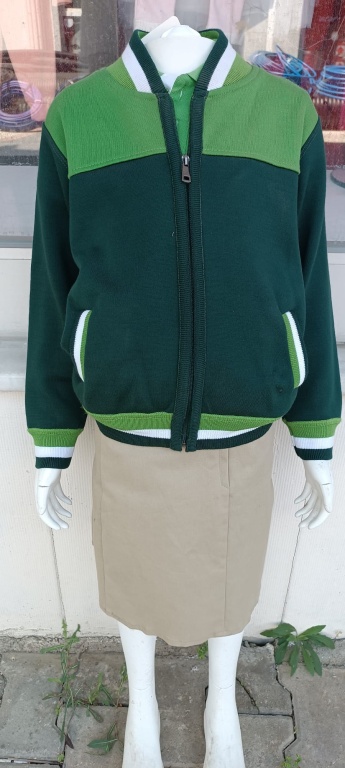 * Doğal ve sağlıklı kumaşlardan açık ve koyu yeşil renkli, fermuarlı, kapüşonsuz hırka